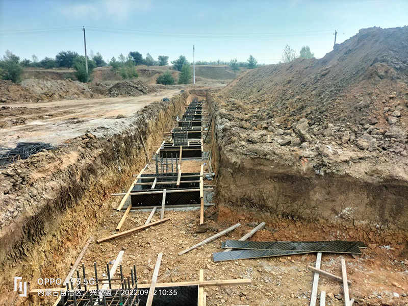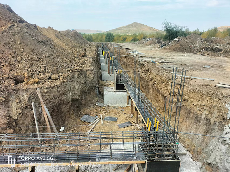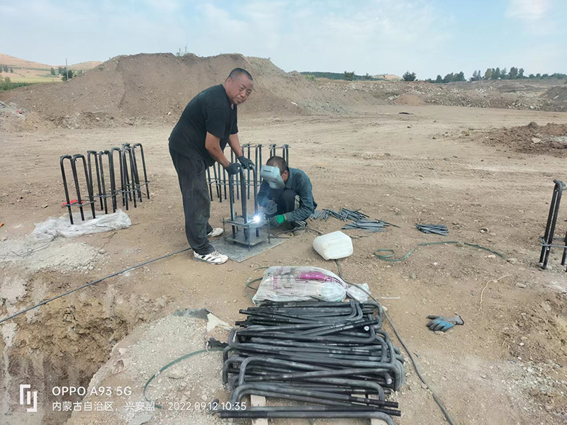 內(nèi)蒙古鋼結(jié)構(gòu)草料棚預埋件施工中